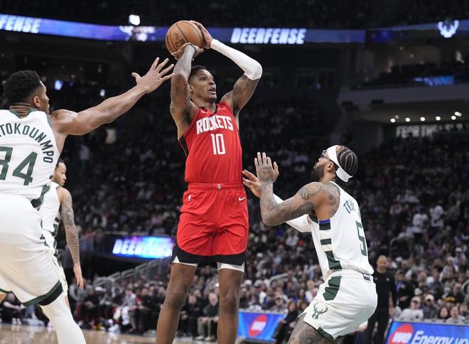 第三节字母醒了,单节轰下14分,和杜兰特对飙。第四节回来,字母在内线予取予求,火箭必须三人合围才能限制他不得分,最后时刻,字母关键两罚不中,给了火箭反超的机会,惨遭逆转。