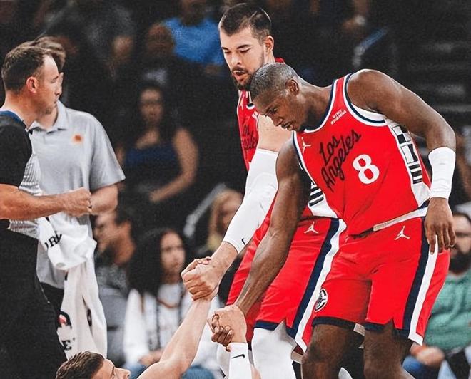 然而,末节太阳核心布克挺身而出,化身“控卫布克”接管比赛。他全场砍下21分10篮板9助攻,准三双数据外加关键投篮,彻底击溃快船防线。太阳的另一位新援狄龙则在攻防两端大放异彩。他不仅贡献16分2篮板3助攻2抢断,更在防守端死缠哈登,让后者几乎无喘息空间。狄龙的加盟极大提升了太阳的团队强度,尤其是在精神属性上,他带来的硬度与对抗性是快船所欠缺的。反观快船,保罗本场未获出场机会,泰伦卢赛后解释称“需要给他更多恢复时间”,但外界普遍认为这是“没油了”的委婉说法。夕阳红战队的尴尬之处在于:休赛期武装到牙齿,却在常规赛开打后集体断崖下滑。